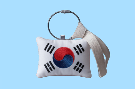 미니쿠션 모양의 키링에 태극기를 그리고 솜을 넣어 키링 완성하기