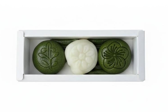 동그란 인절미 3개에 무궁화, 꽃, 복(福) 도장을 찍어 떡세트 완성하기